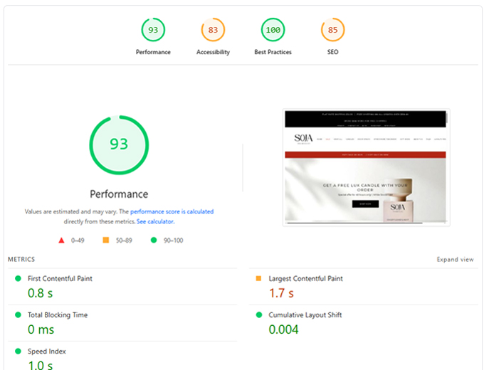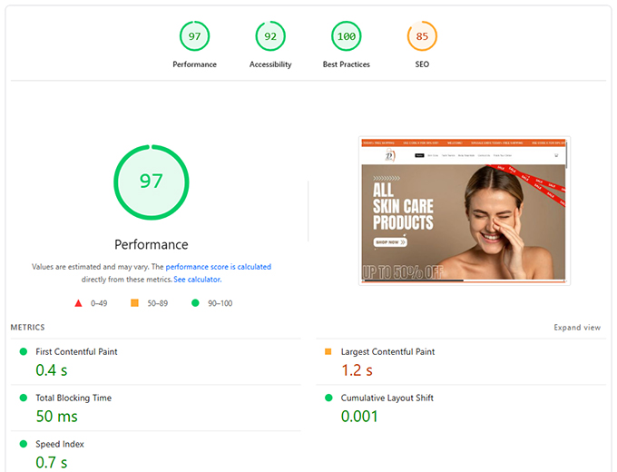 90+ Google PageSpeed Score Image Load Time Under 3s